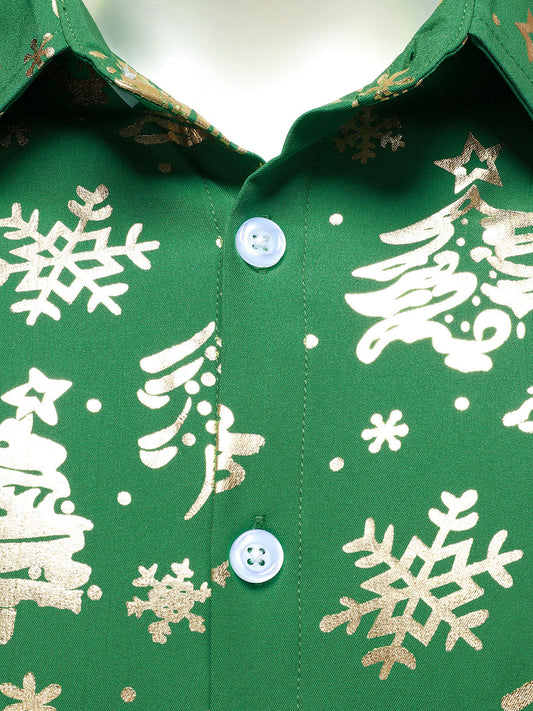 Mænds Juletræ Sjovt Outfit Juletema Top Ferie Grøn Knap Langærmet Skjorte