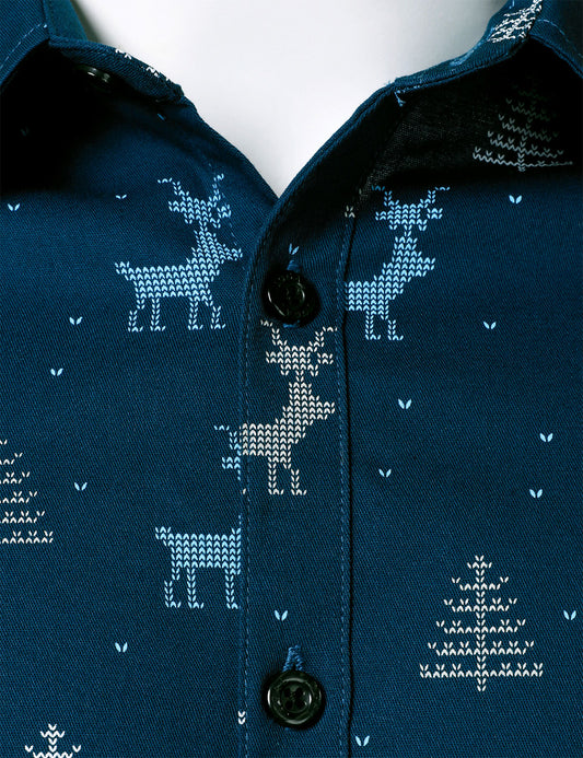 Herre Juletræ Elg Print Åndbar Marineblå Langærmet Skjorte