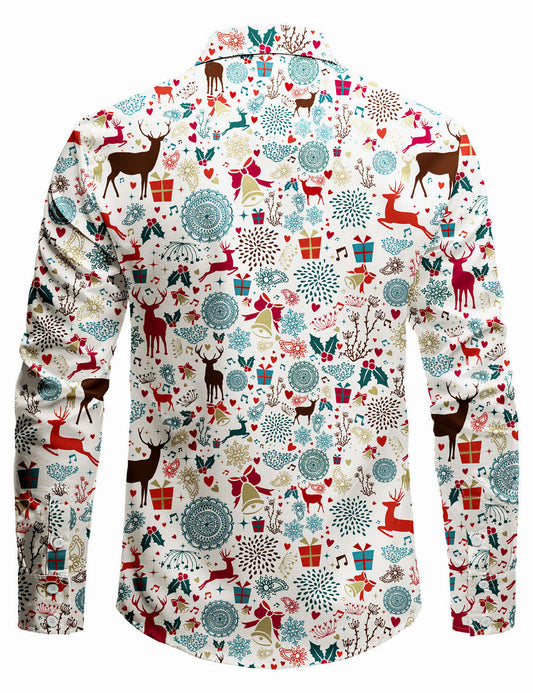 Herre Jule Rensdyr Festlig Print Xmas Ferie Hvid Langærmet Skjorte