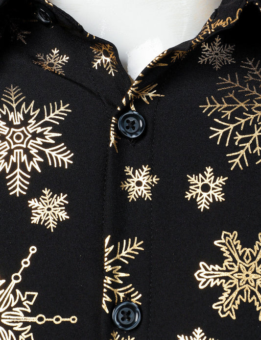 Herre Guld Jul Print Sort Langærmet Skjorte