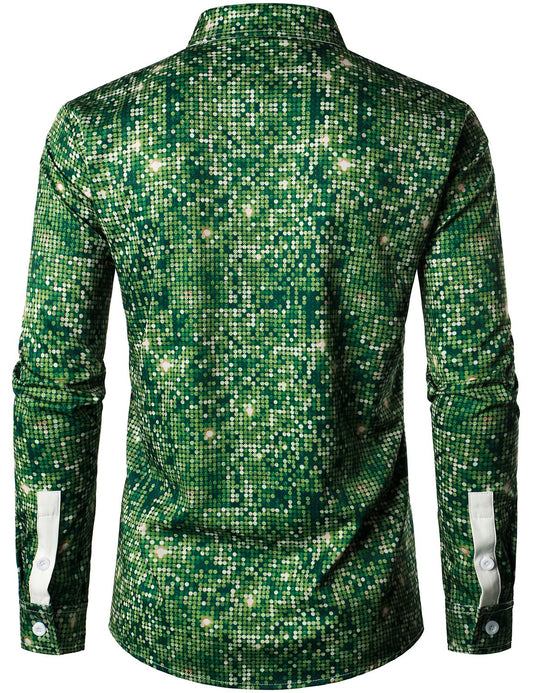 Herre Fyrværkeri Ferie Nytår Fest Knap-Op Blå Langærmet Skjorte